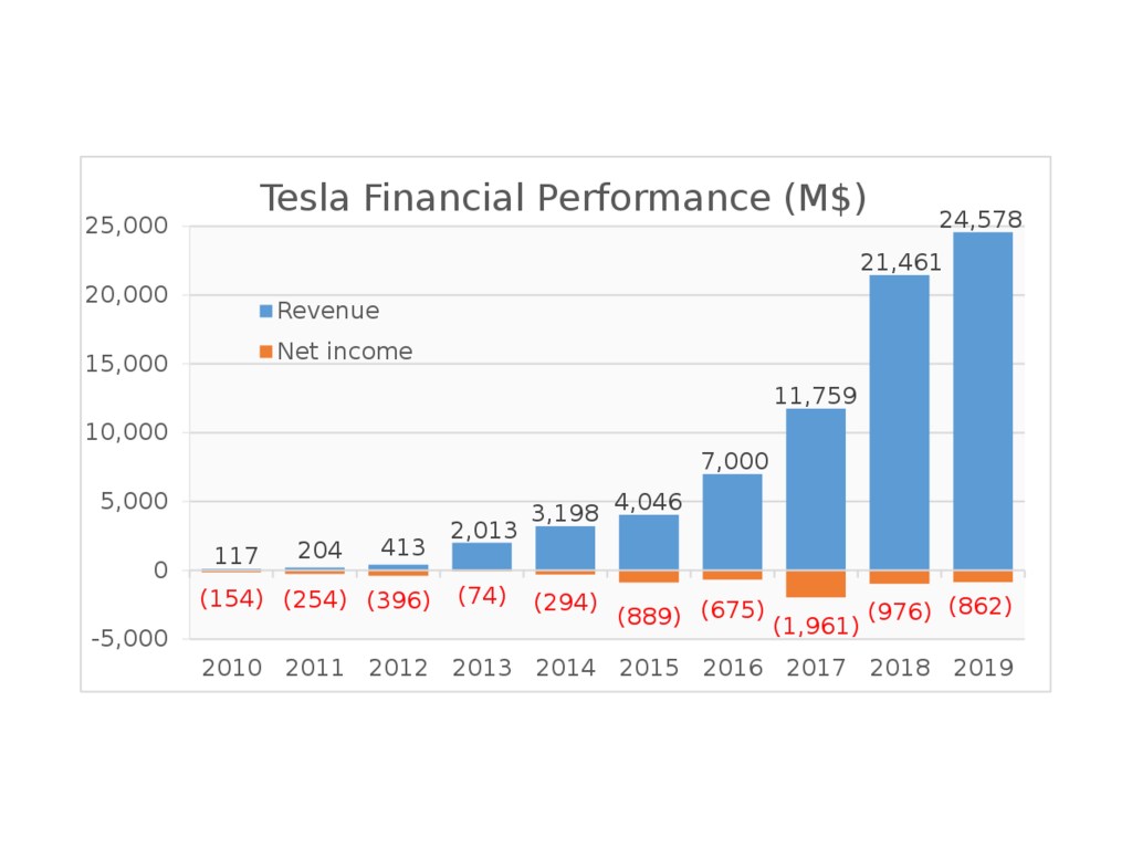 In den 42 Quartalen zwischen dem Börsengang in Ende Juni 2010 und dem Ende der Kalenderjahres 2020 erwirtschaftete Tesla aus seinem operativen Geschäft, also aus der Produktion und dem Verkauf von Elektroautos, nur Verluste (im Kalenderjahr 2017 summierten sich diese auf rund 2,0 Milliarden US-Dollar) – und zwar obwohl die von Tesla produzierten und verkauften Elektroautos eher hochpreisig sind und für Normalverdiener selbst nach Abzug staatlicher Subventionen kaum erschwinglich sind.